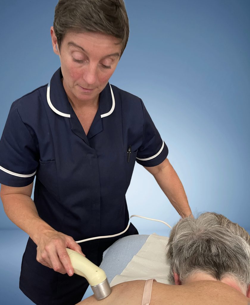 Ultrasound therapy is a non-invasive treatment in which sound waves are used to penetrate soft tissues thereby increasing the blood flow. This improvement in circulation can help relieve pain and so promote tissue healing.