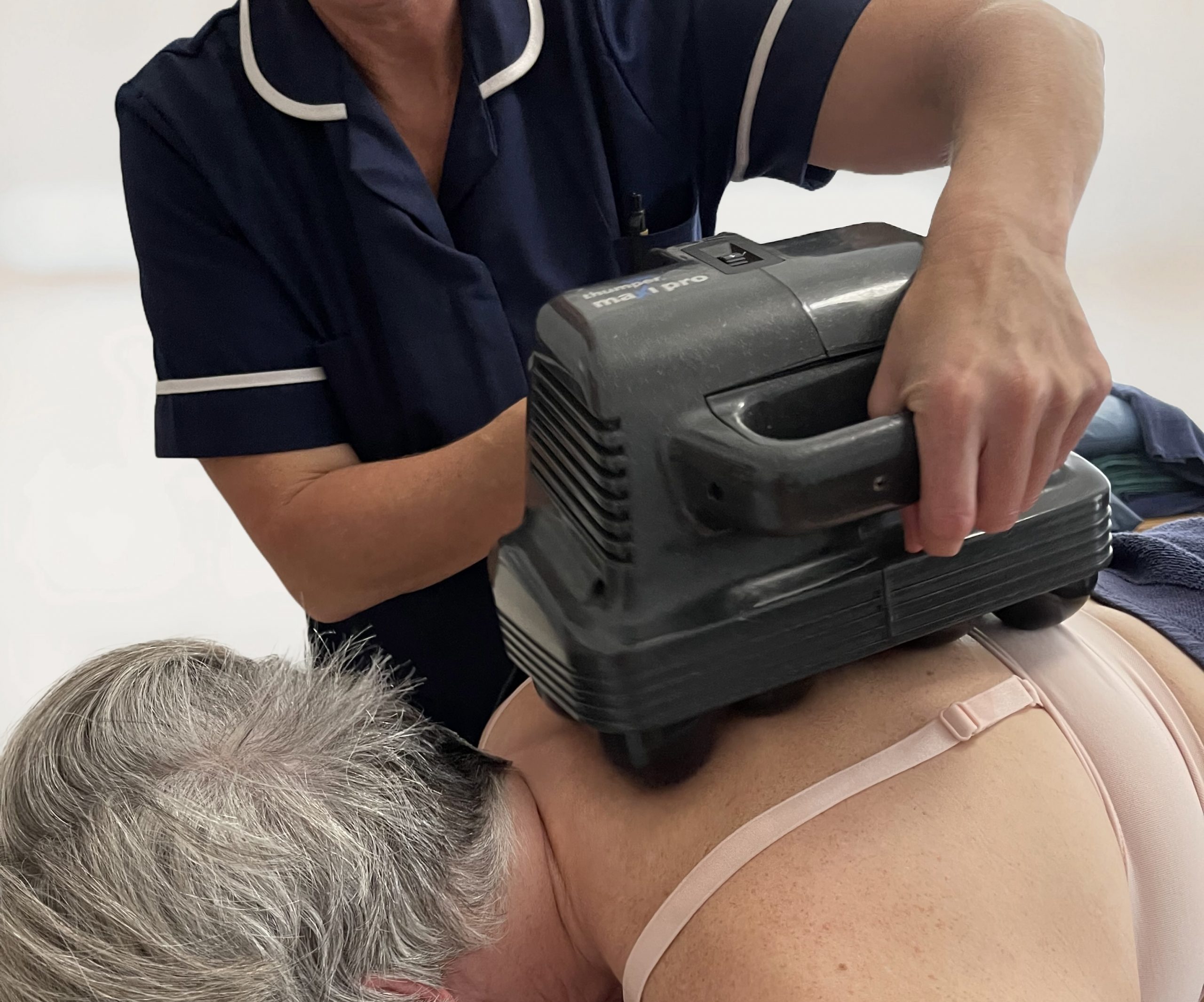 The Thumper is a hand-held percussive device that transmits energy deep into the muscle tissue releasing tension through all the fascia layers.