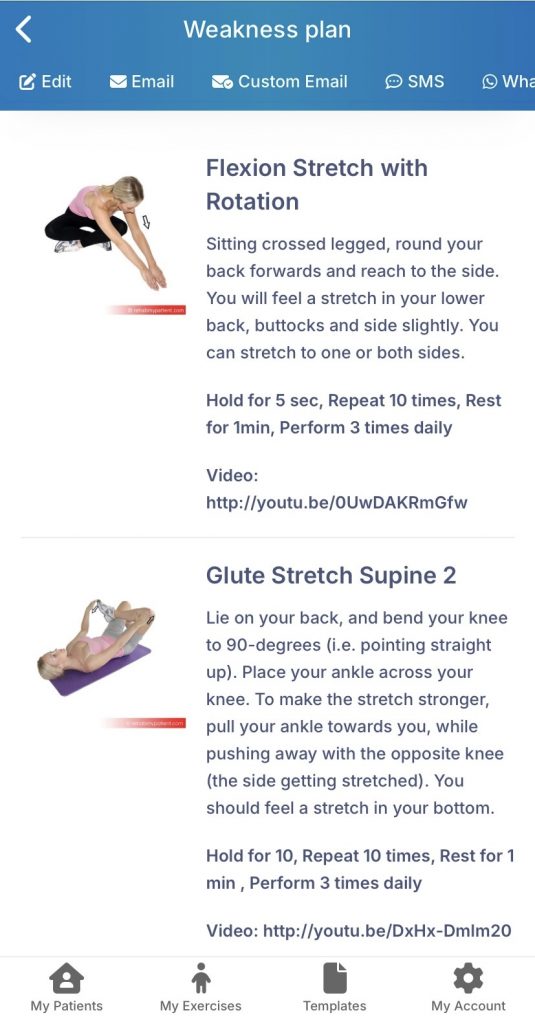 As part of developing personalised plans for patients, Evonne uses Rehab My Patient (RMP), so she can email you tailored exercise plans to help your recovery and reach your goals.